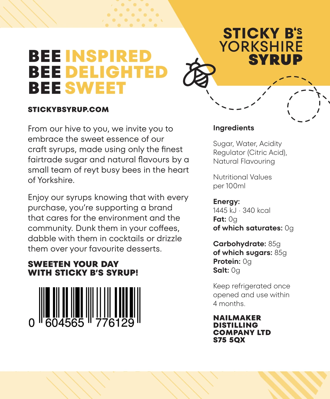 Sticky B’s classic syrups are lovingly crafted in Yorkshire in small batches. Made with natural flavourings, Fairtrade sugar and local Pennine Spring Water, our syrups really are the bee’s knees.